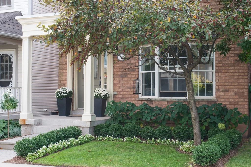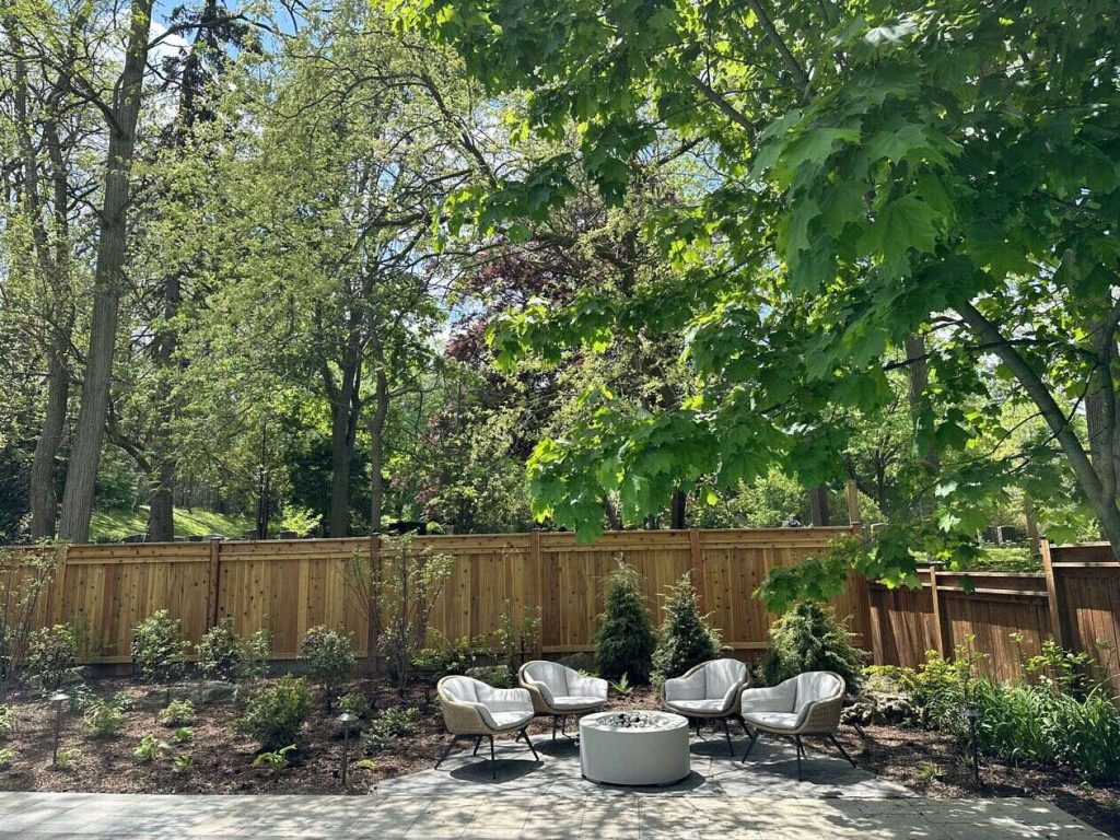 In one Oakville project, they transformed a small, tired garden into a formal English-style space inspired by the client’s childhood. Using a timeless green and white palette, the team layered perennials, flowering shrubs, and textured greenery for an elegant look.